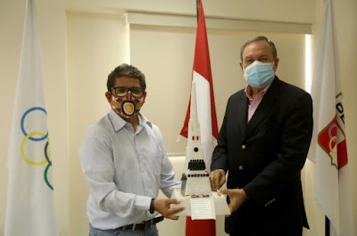 La propuesta fue recibida por el Presidente del Comité Olímpico Peruano, Dr. Pedro Del Rosario, y el Gerente General de la entidad, Rudy Montero, en el salón de sesiones del COP, en la Videna.